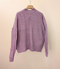 Hippie Rose XL lavender mock turtleneck with quartered knit patterns, ribbed, cable knit.