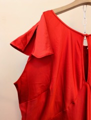 The Occasion by Old Navy NWT red polyester satin bias-cut open flutter sleeve keyhole front gown
